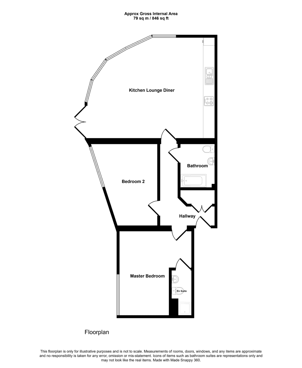 Two bedrooms one with an ensuite shower room, bathroom, open plan lounge / diner and kitchen.